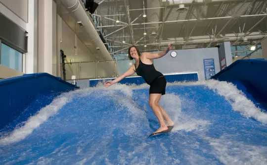 • To try standing on the FlowRider®, you must be at least 4'4'' tall, fill out a waiver, and show government-issued ID. Parents can sign the waiver for their children.